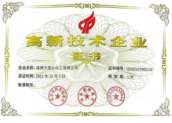 公司產(chǎn)品符合國家的產(chǎn)業(yè)政策,各種手續(xù)齊全,通過了環(huán)保、衛(wèi)生、消防、安全生產(chǎn)許可等各項驗收,企業(yè)化學(xué)品安全標(biāo)準(zhǔn)化三級達(dá)標(biāo)驗收,并且通過了ISO9001質(zhì)量管理體系認(rèn)證、ISO14001環(huán)境管理體系、ISO45001職業(yè)健康管理體系,先后被有關(guān)部門授予“市級重合同守信用企業(yè)”“消費者滿意單位”“質(zhì)量、計量管理先進(jìn)單位”“勞動關(guān)系和諧企業(yè)”“企業(yè)免檢單位”“淄博市專精特新中小企業(yè)”“山東省化工明星單位”“山東化工發(fā)展?jié)摿?0強(qiáng)”“淄博市智能車間”“山東省創(chuàng)新型中小企業(yè)”“科技型中小企業(yè)”“高新技術(shù)企業(yè)”“山東省專精特新”等稱號。